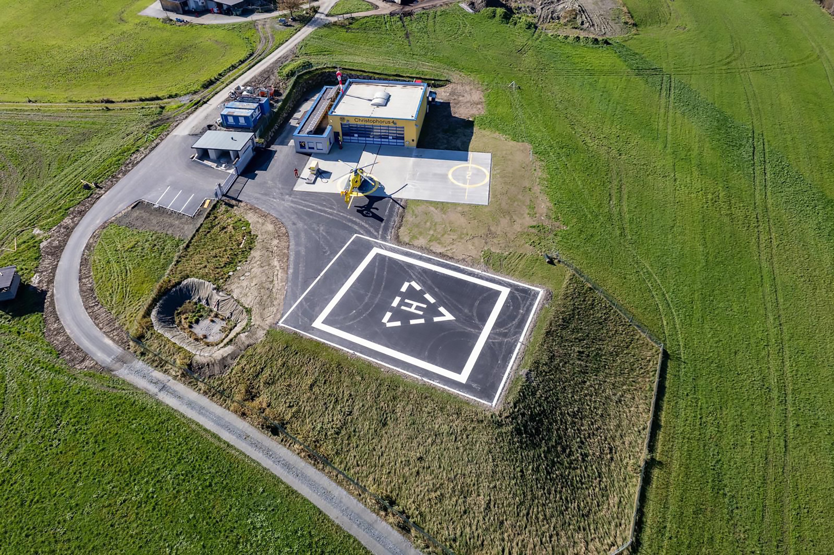 Errichtung von einem Hubschrauberhangar mit angeschlossenem Verwaltungsgebäude und Landeplatz.