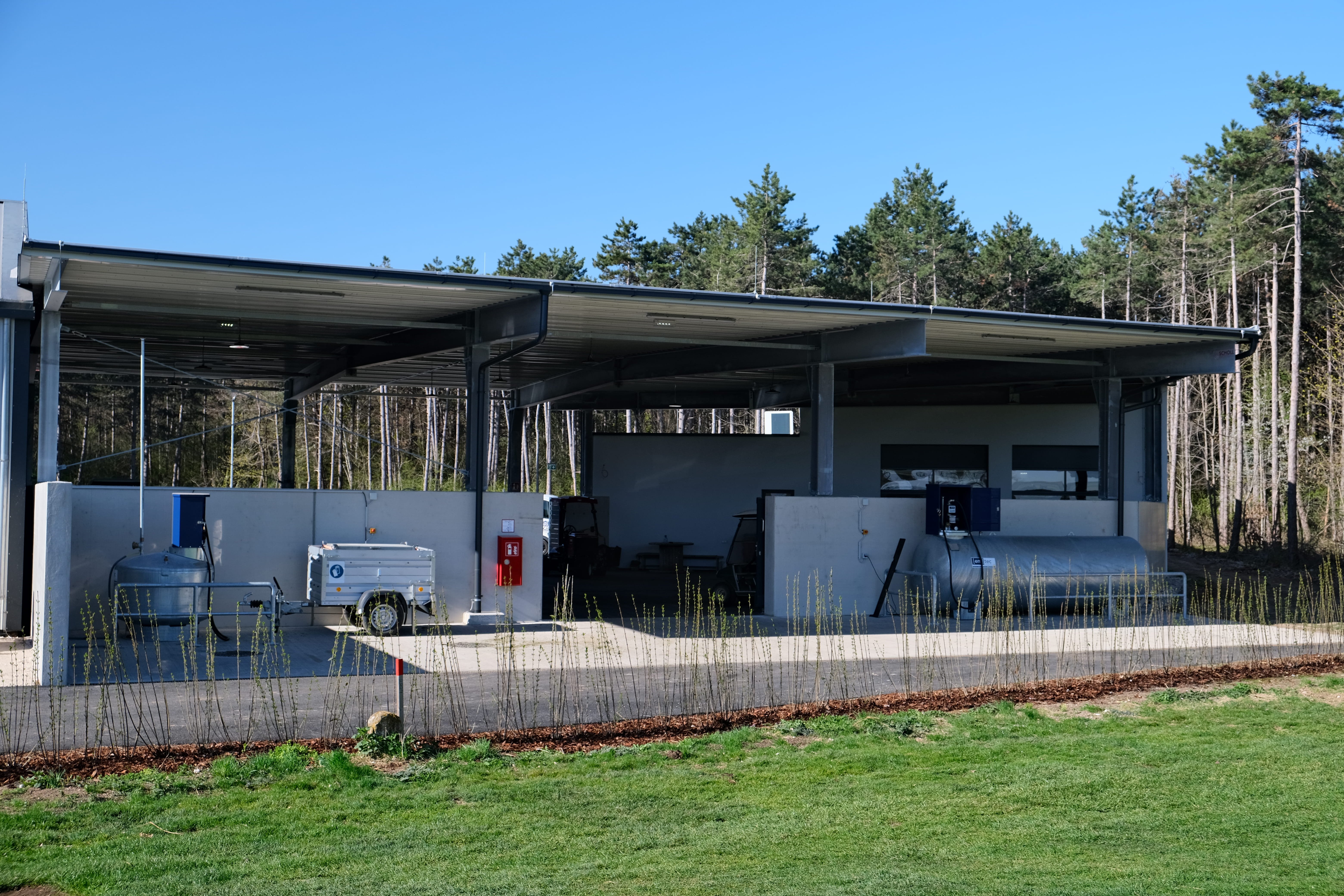 Die Errichtung eines Greenkeeper-Centers, welches die Werkstatt mit den notwendigen Nebenräumen, Aufenthaltsräume für die Mitarbeiter, Lagerräume, einen Waschplatz, eine Tankstelle, sowie den Technikraum beinhaltet. Die moderne Anlage ist so konzipiert, dass es den täglichen Anforderungen eines professionellen Greenkeeping-Teams gerecht wird. Es ist das Herzstück der Platzpflege und sorgt nun für einen reibungslosen Betrieb des Golfclubs.