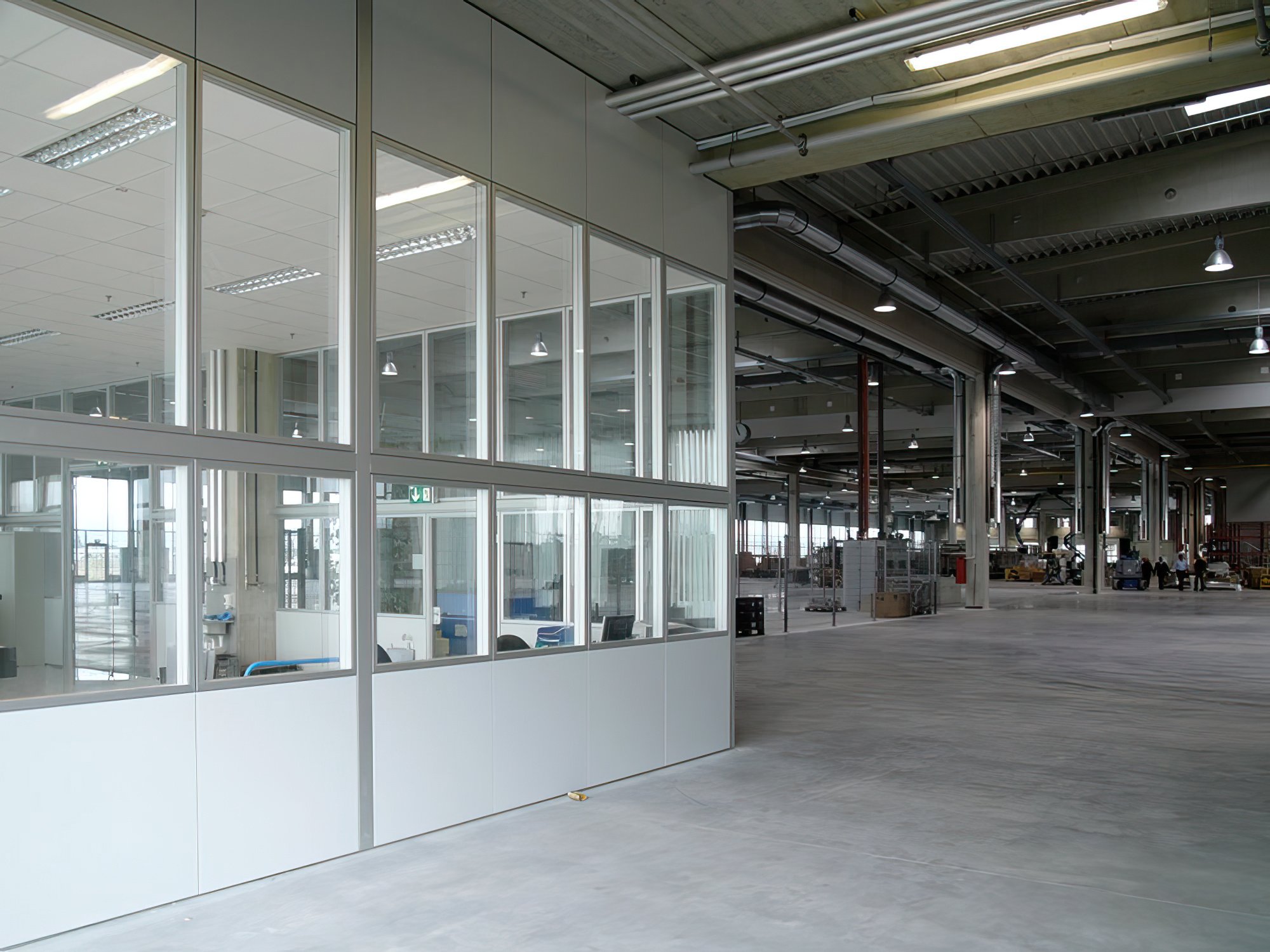 Die funktionell und energetisch optimierte Baustruktur weist Tragwerke in Stahlbetonfertigteil-Bauweise mit integrierten Galeriebereichen auf.