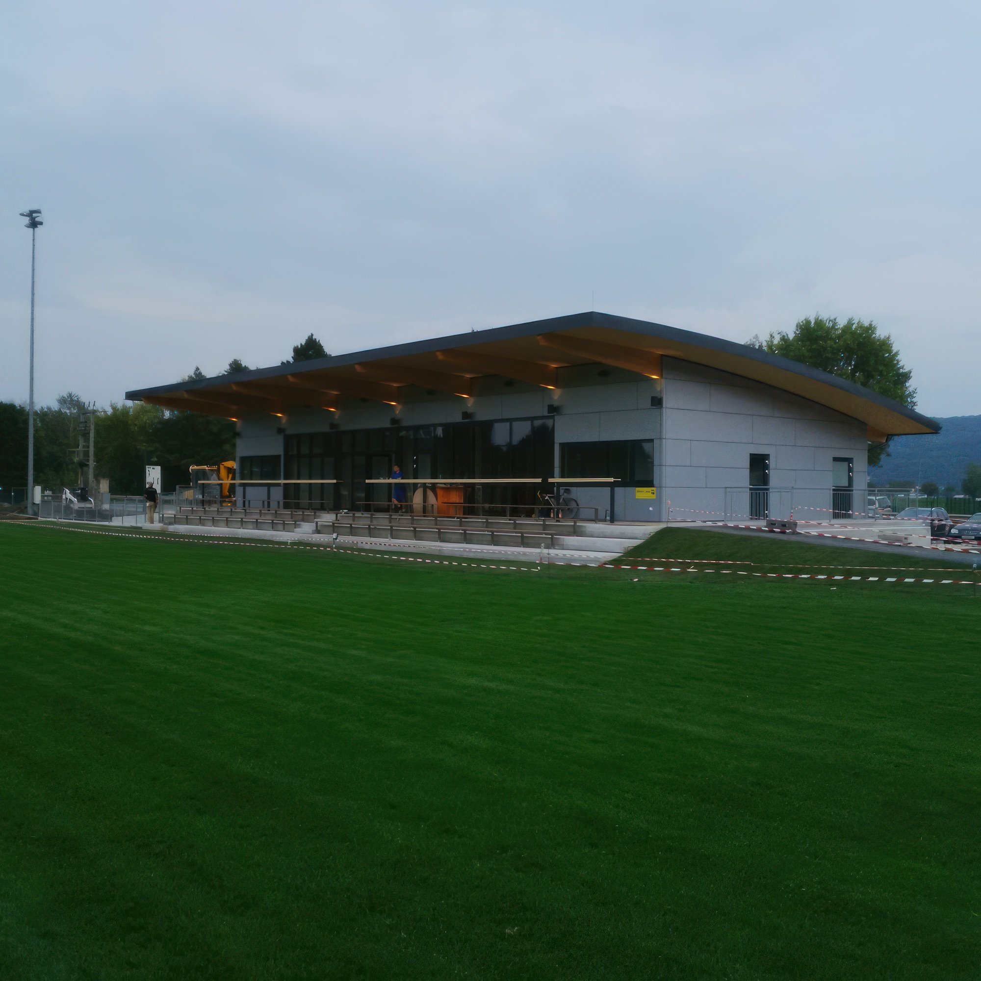Errichtung eines neuen Klubgebäudes für den 1. FC Bisamberg mit 2 Umkleidekabinen und den dazugehörigen Nassräumen, inklusive Sauna für die Heimmannschaft sowie einer Kantine.