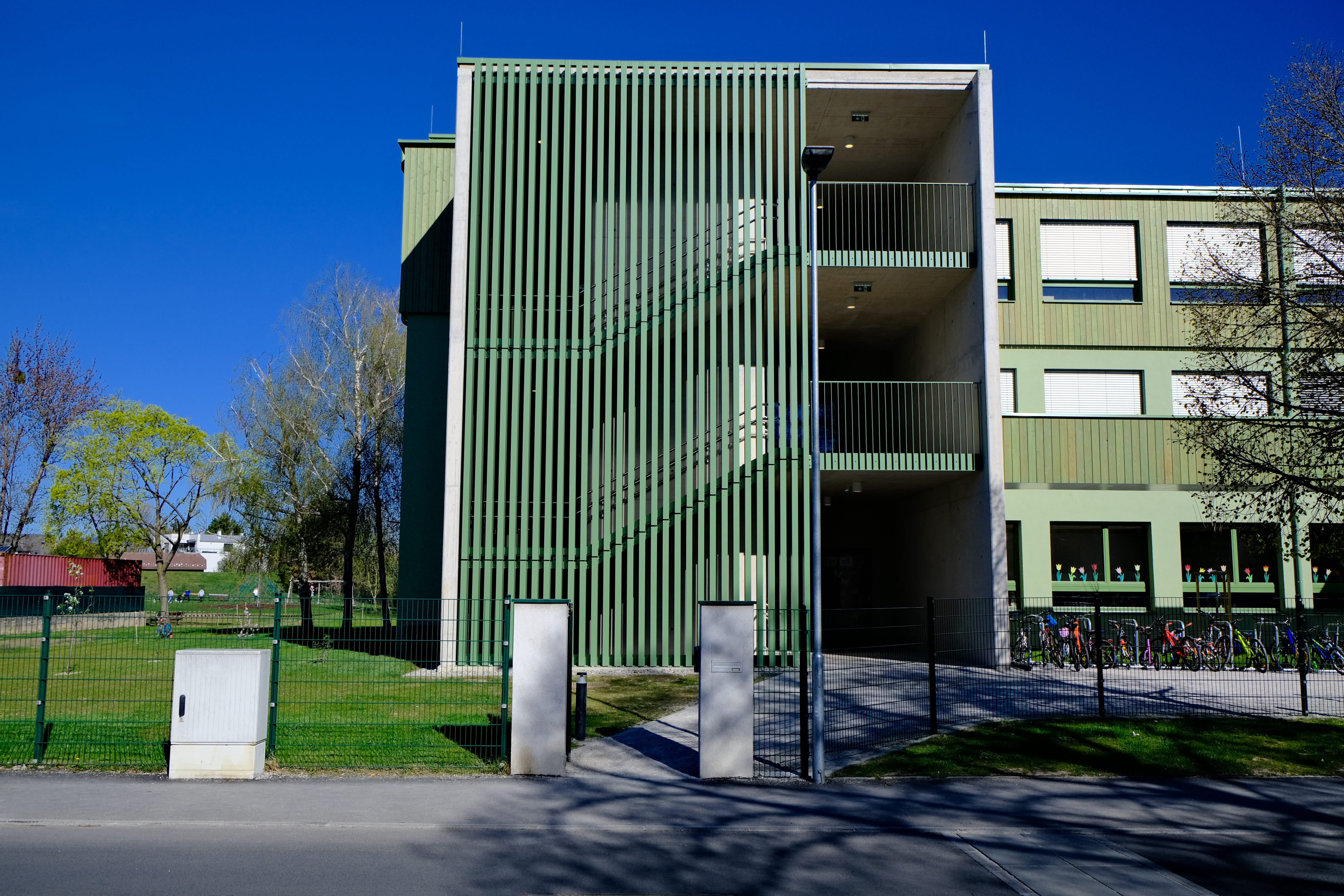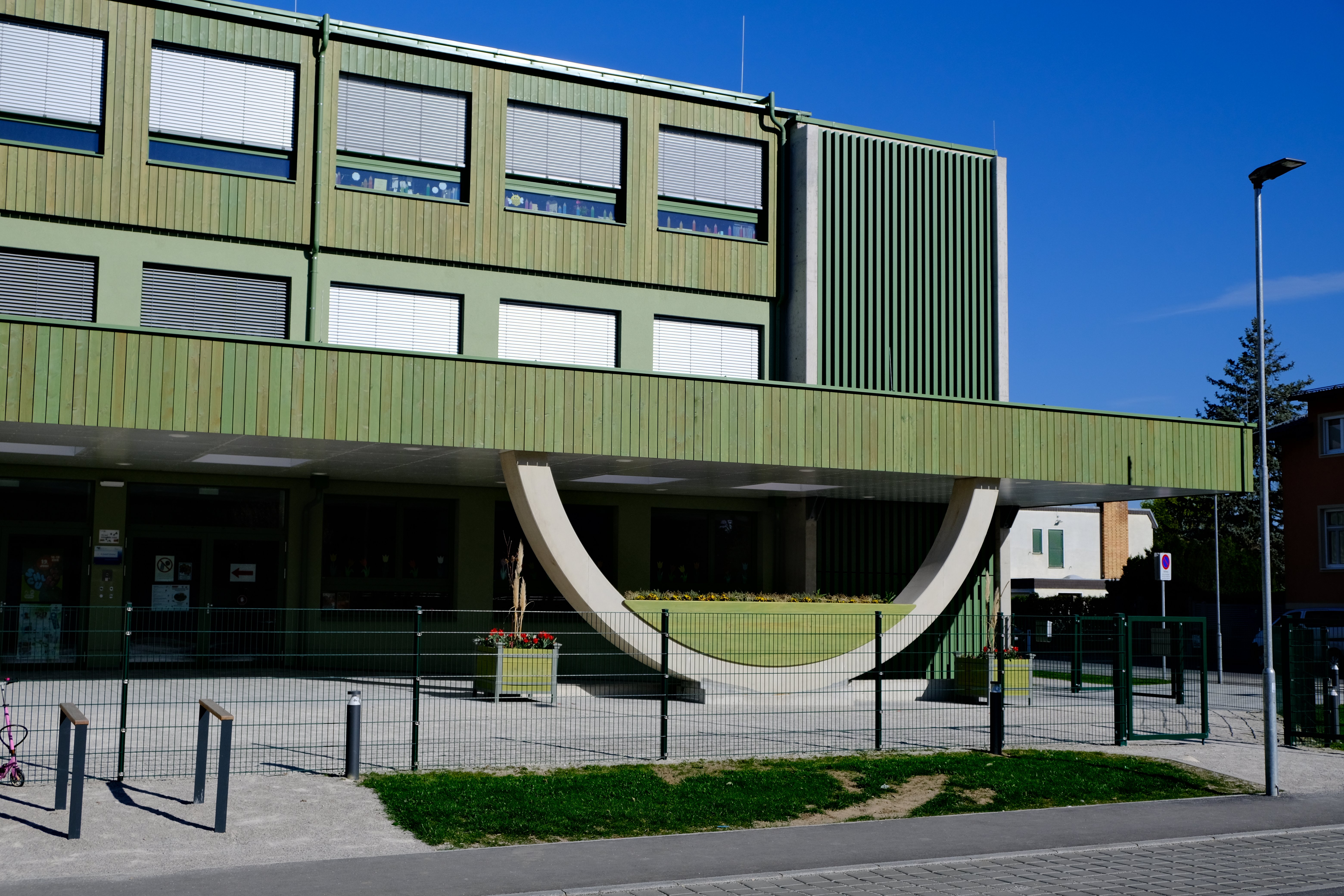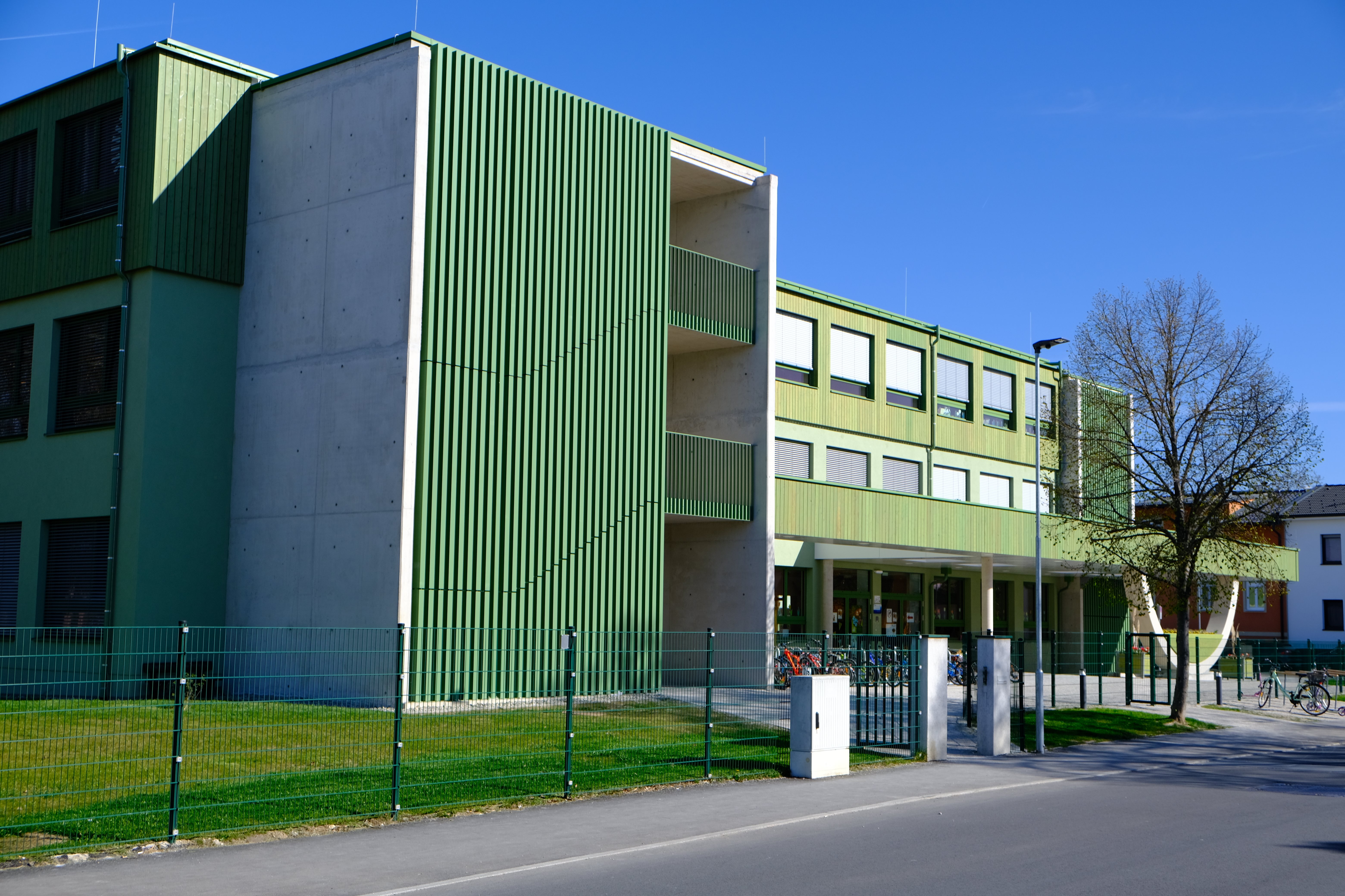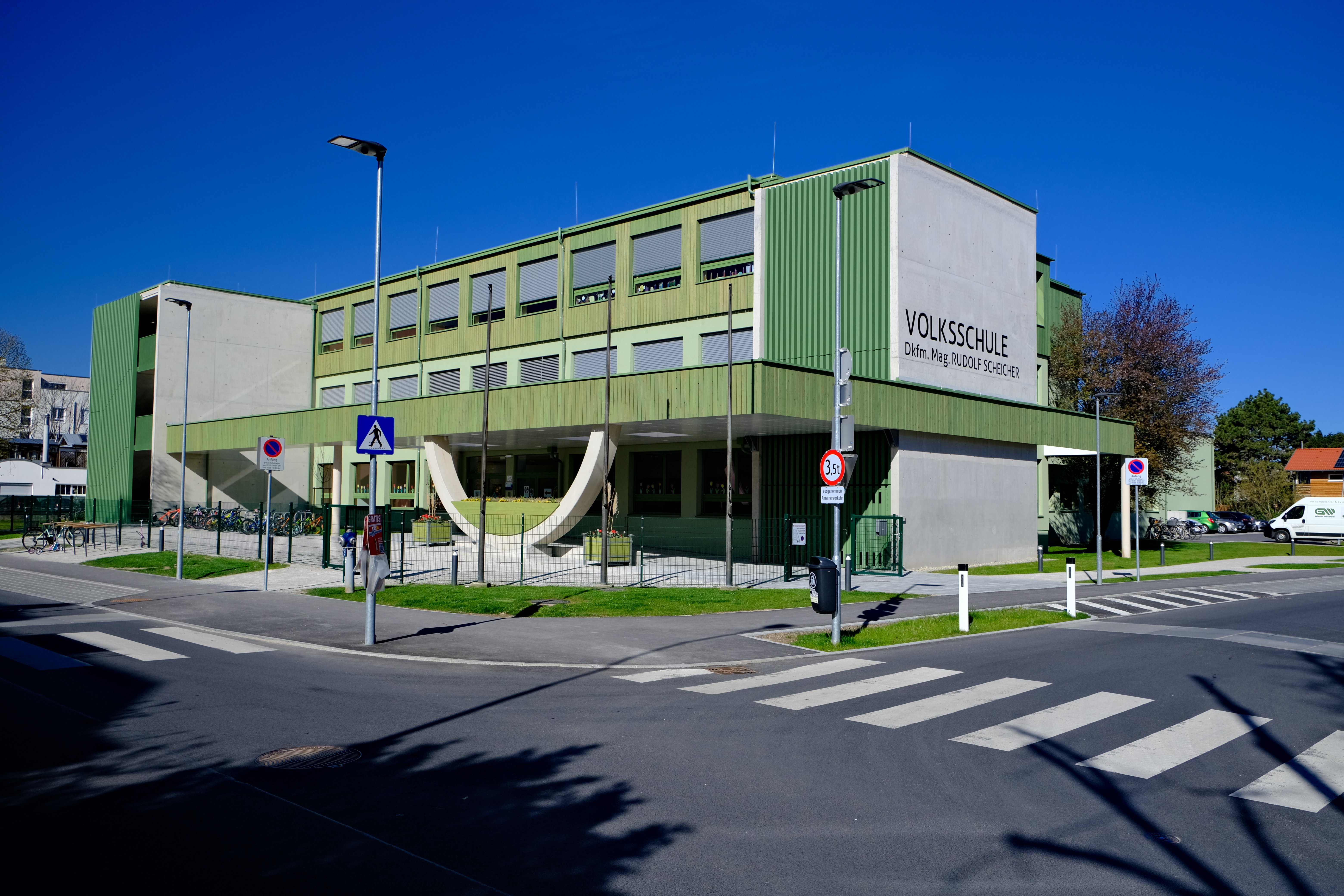 Umbau und Aufstockung einer Volksschule mit 16 Klassen und den notwendigen Außenanlagen. Über den neu geschaffenen Vorplatzbereich entlang der Lazarettgasse erreicht man den neu situierten Haupteingang für die Schüler mit anschließender Zentralgarderobe. Von dort gelangt man in die Verteilerhalle, die sich über drei Ebenen erstreckt. Das Erdgeschoß und das erste Obergeschoß wurden teilweise geändert. Durch die Aufstockung wurden sieben weitere Klassen, drei Gruppenräume sowie notwendige Nebenräume erschaffen. Die neuen Außenanlagen bieten viel Platz für Schüler, sowie Parkmöglichkeiten.