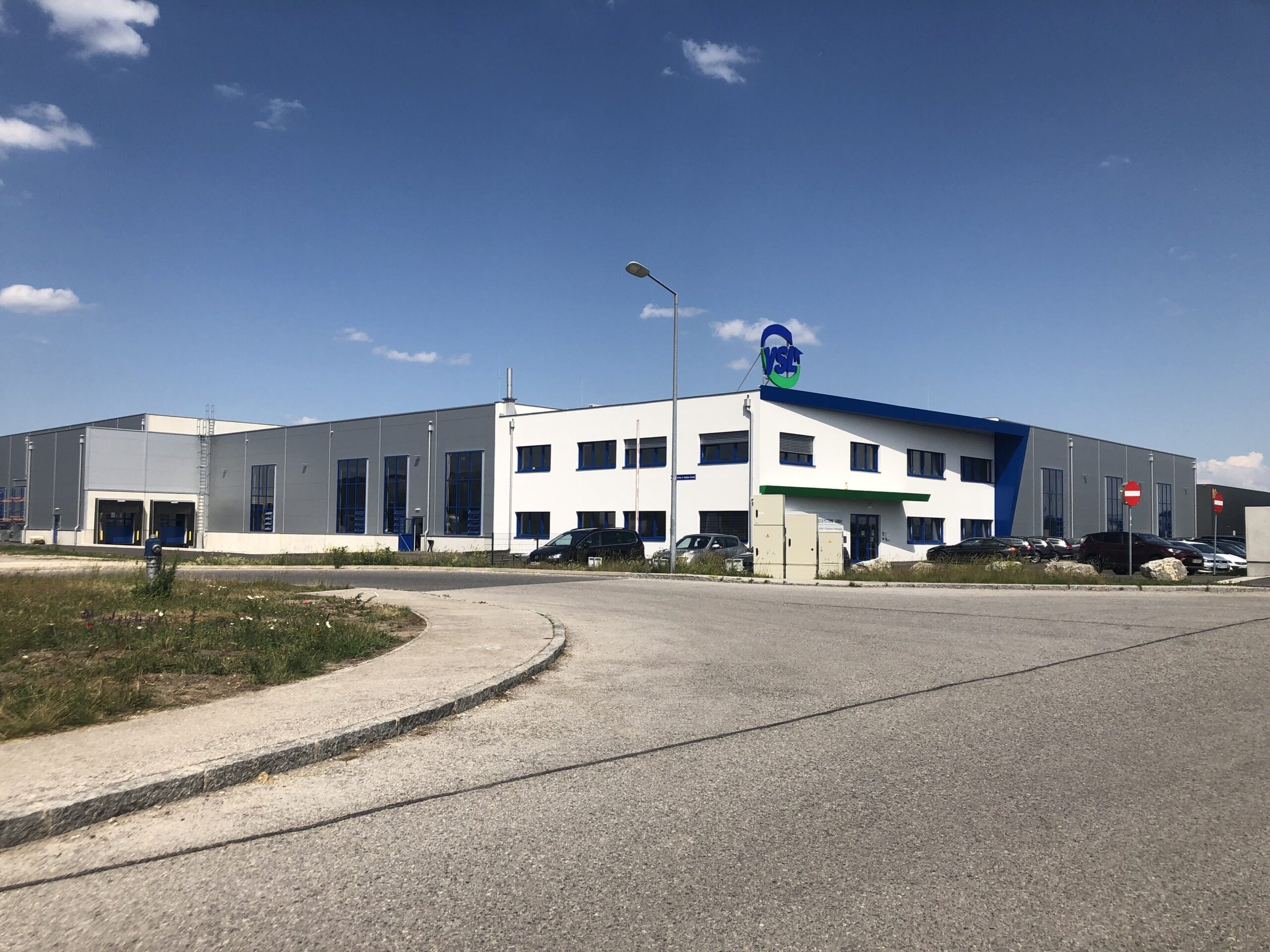 Errichtung und Betrieb einer Betriebsanlage mit Produktionshalle, Halle für Warenan- und -ablieferung, zwei Regallagern, eines Bürogebäudes sowie eines überdachten Lagerplatzes.